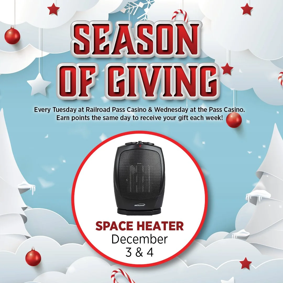 Season of Giving Days Wednesday, December 4, 2024 12:00 AM 11:55 PM Railroad Pass Casino 1500 Railroad Pass Casino Road Henderson, NV, 89002 United States (map) Google Calendar ICS