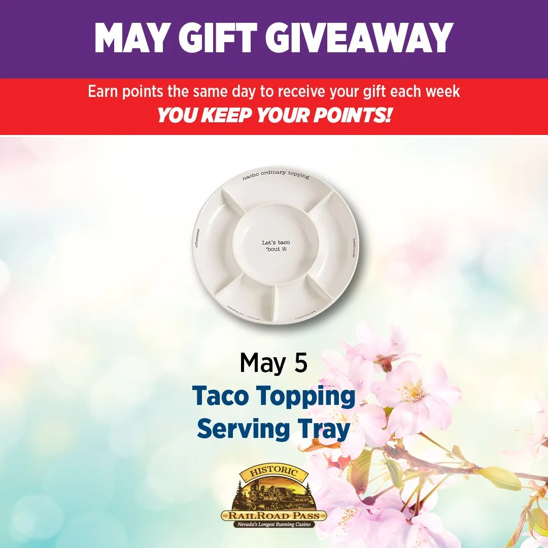 Gift Giveaway Tuesday, May 5, 2026 9:00 AM 9:00 PM Railroad Pass Casino 1500 Railroad Pass Casino Road Henderson, NV, 89002 United States (map) Google Calendar ICS